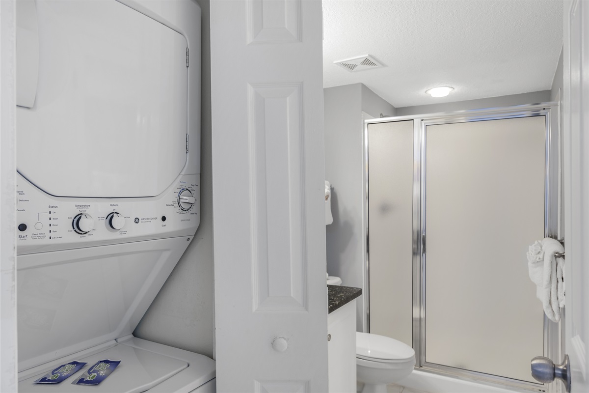 Laundry room (coin/credit card operated) located next to elevators on every floor, in addition to the washer/dryer in the unit.