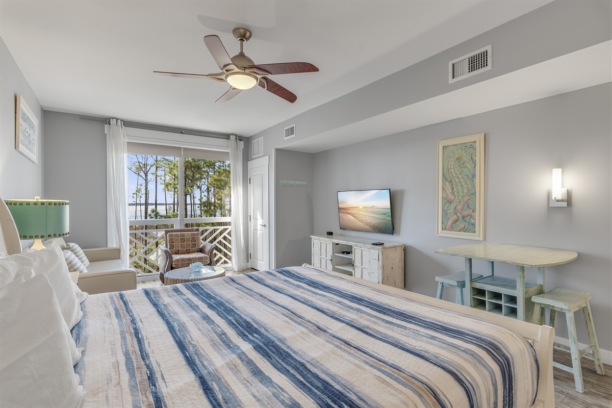 1 Bathroom 1 Bath • Sleeps 1-4Bayfront Studio at Bahia | Stunning Sunset Views | King Bed + Sofa Bed | Steps to Baytowne Wharf & Resort TRAM